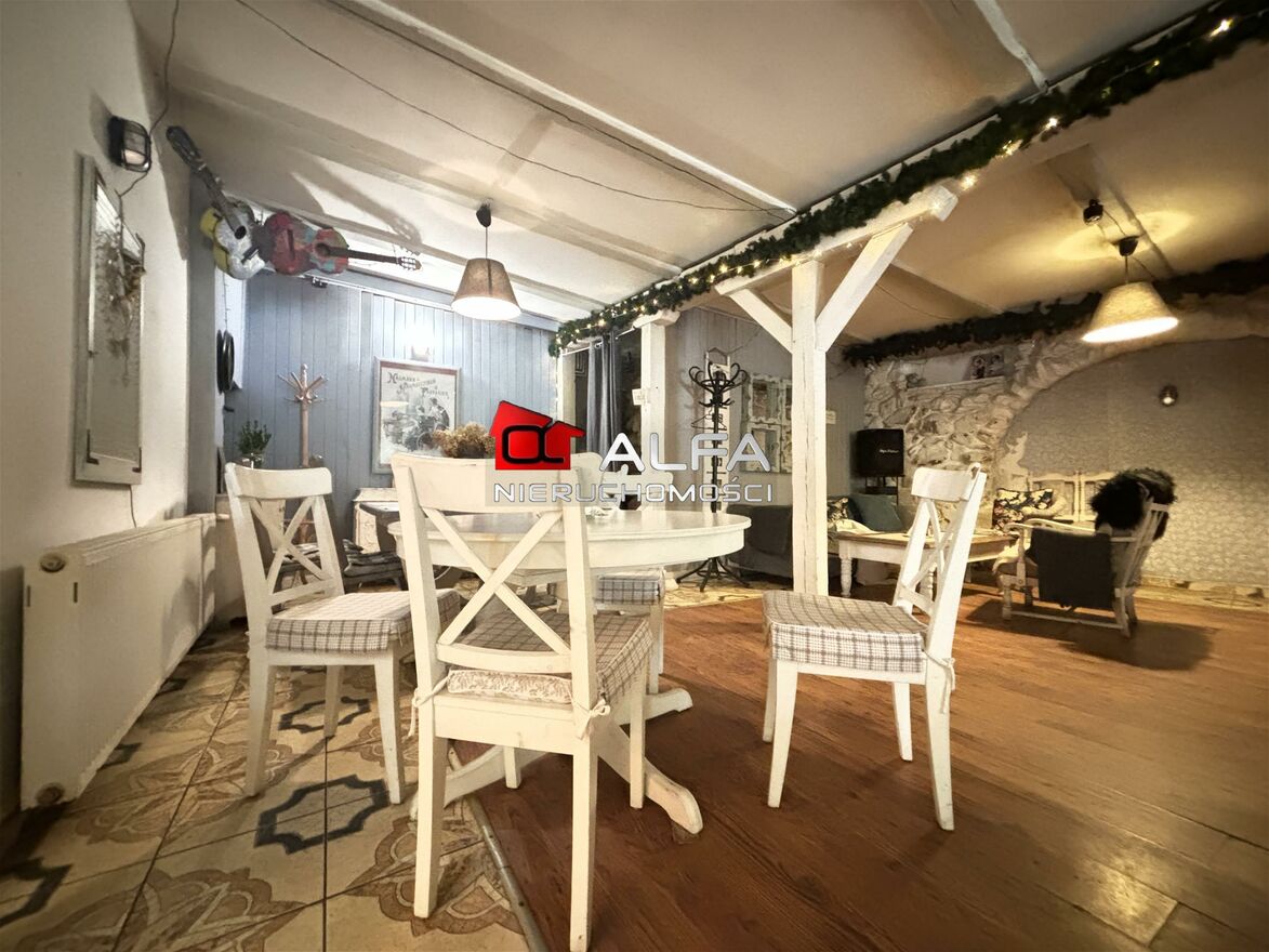 Nieruchomość o powierzchni usługowej 193,60 m2 składa się z 2 sal konsumpcyjnych, baru, korytarza, kuchni, 2 sanitariatów, antresoli oraz tarasu!