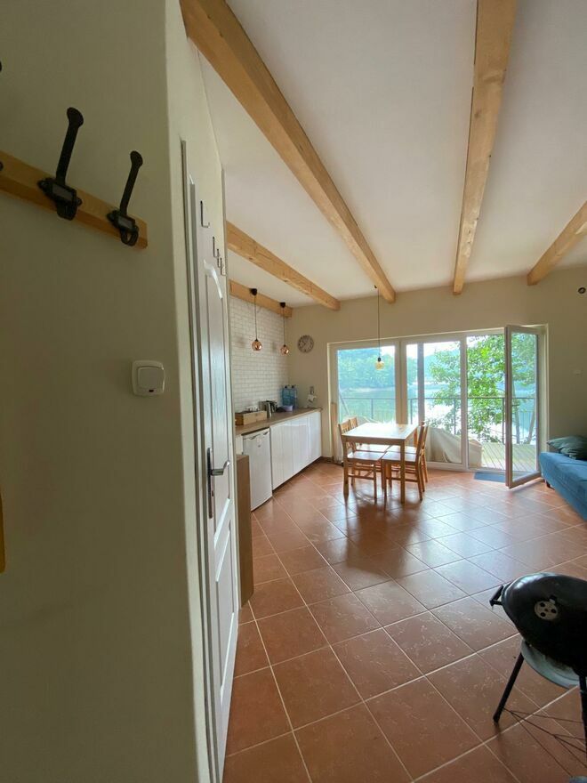 Sprzedam dom w Zagórzu Śląskim bezpośrednio nad jeziorem.Na parterze znajduje się łazienka, salon z aneksem kuchennym i wyjściem na taras. Z tarasu jest zejście do podpiwniczenia i jeziora.